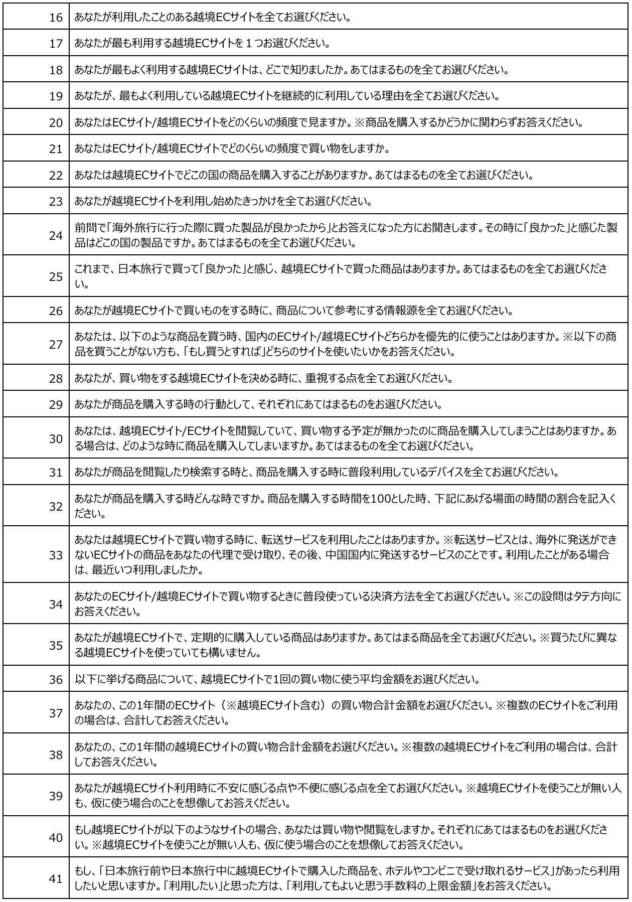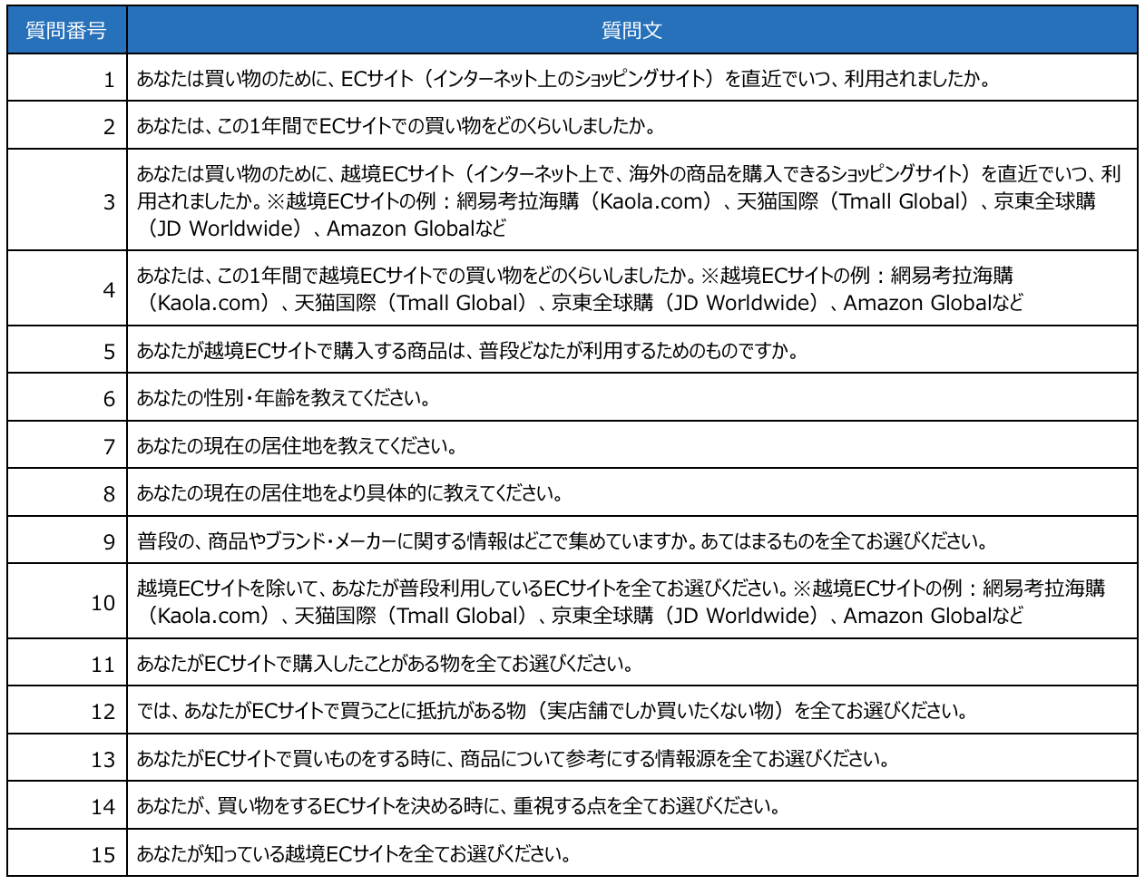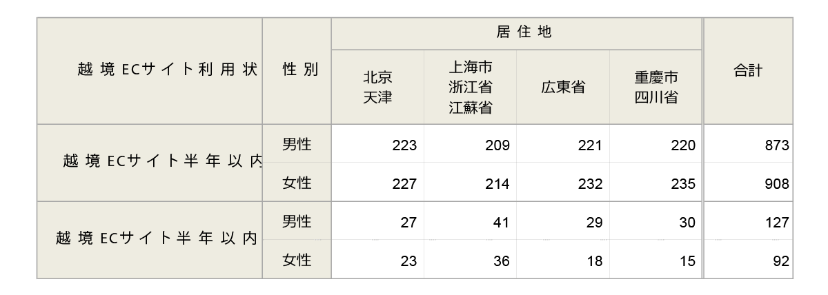 調査目的:中国国内におけるECサイト・越境ECサイトの利用実態の把握