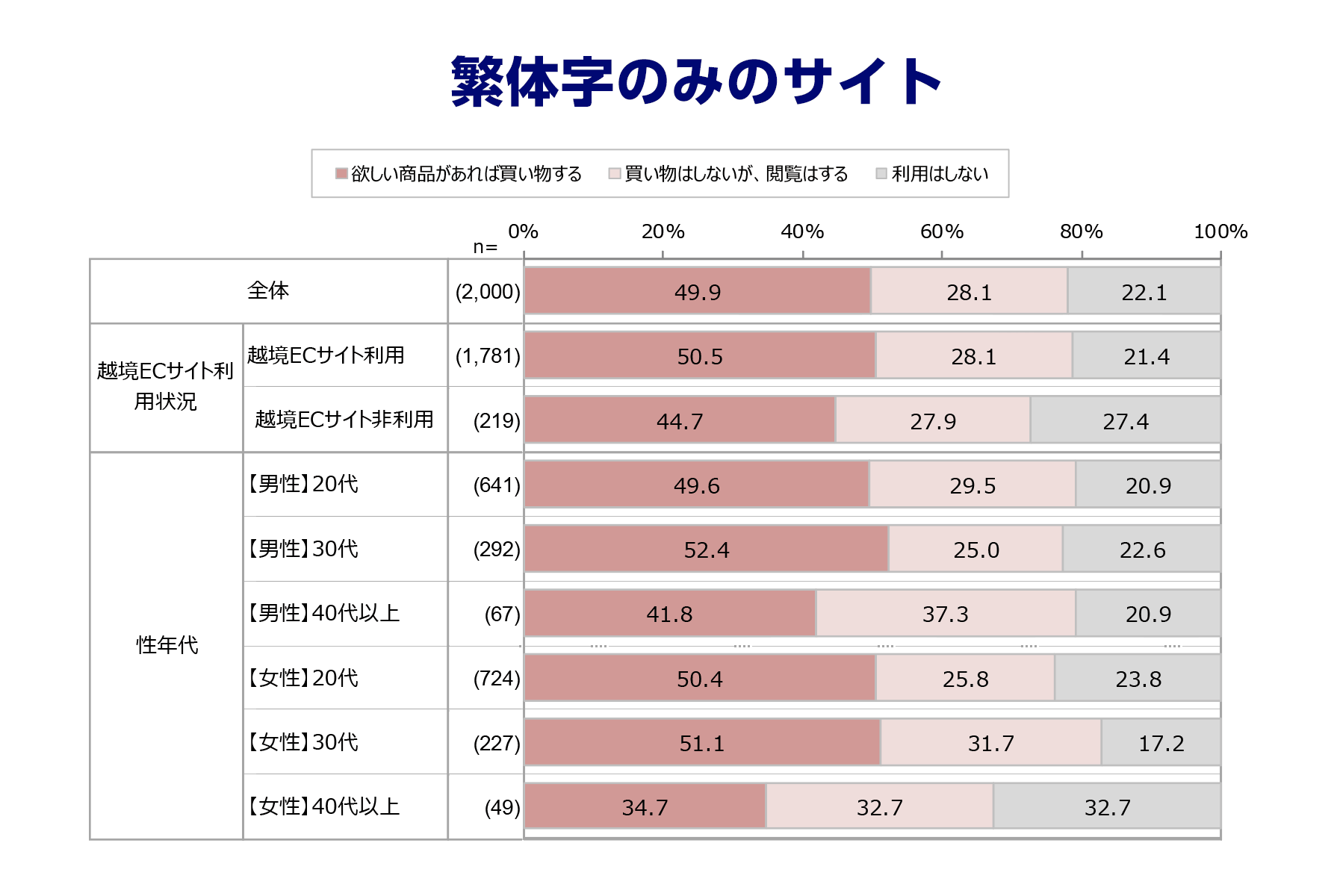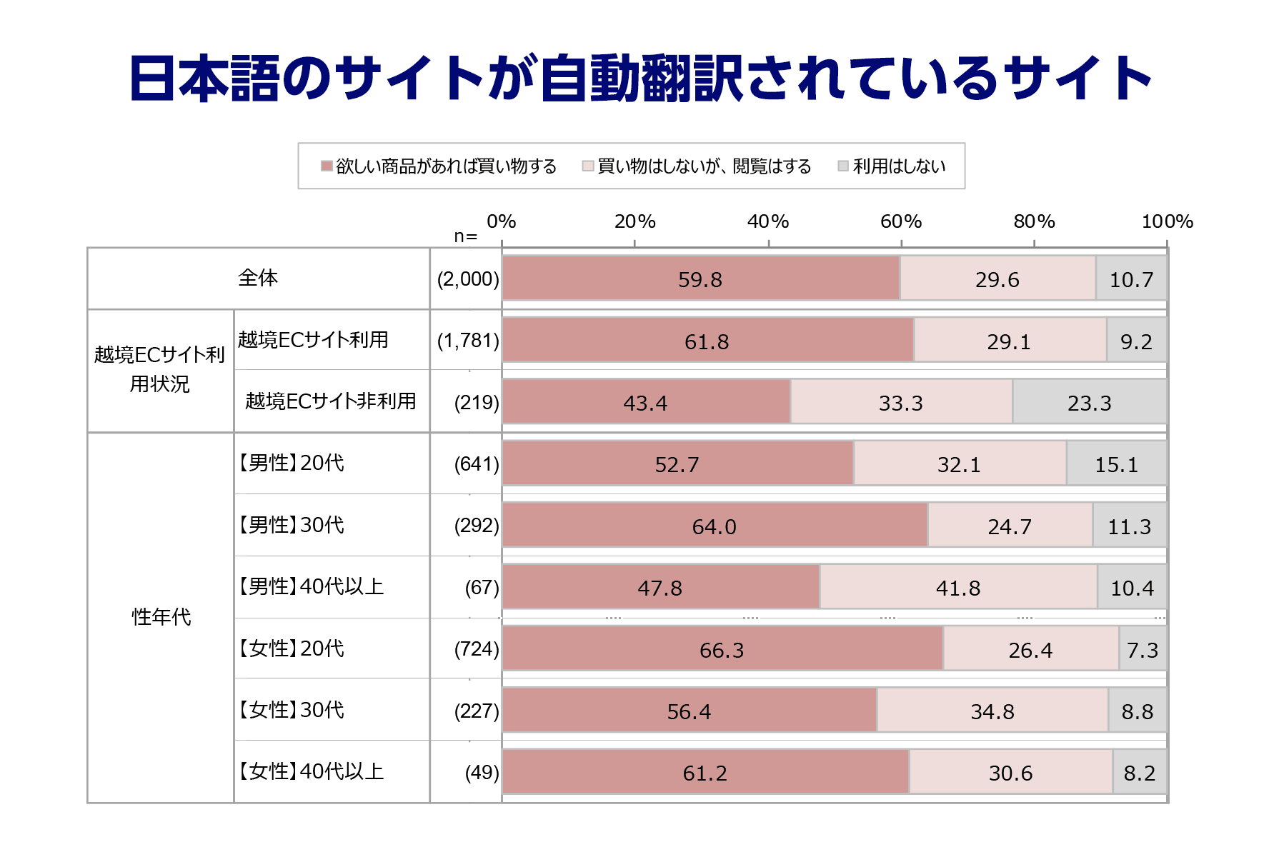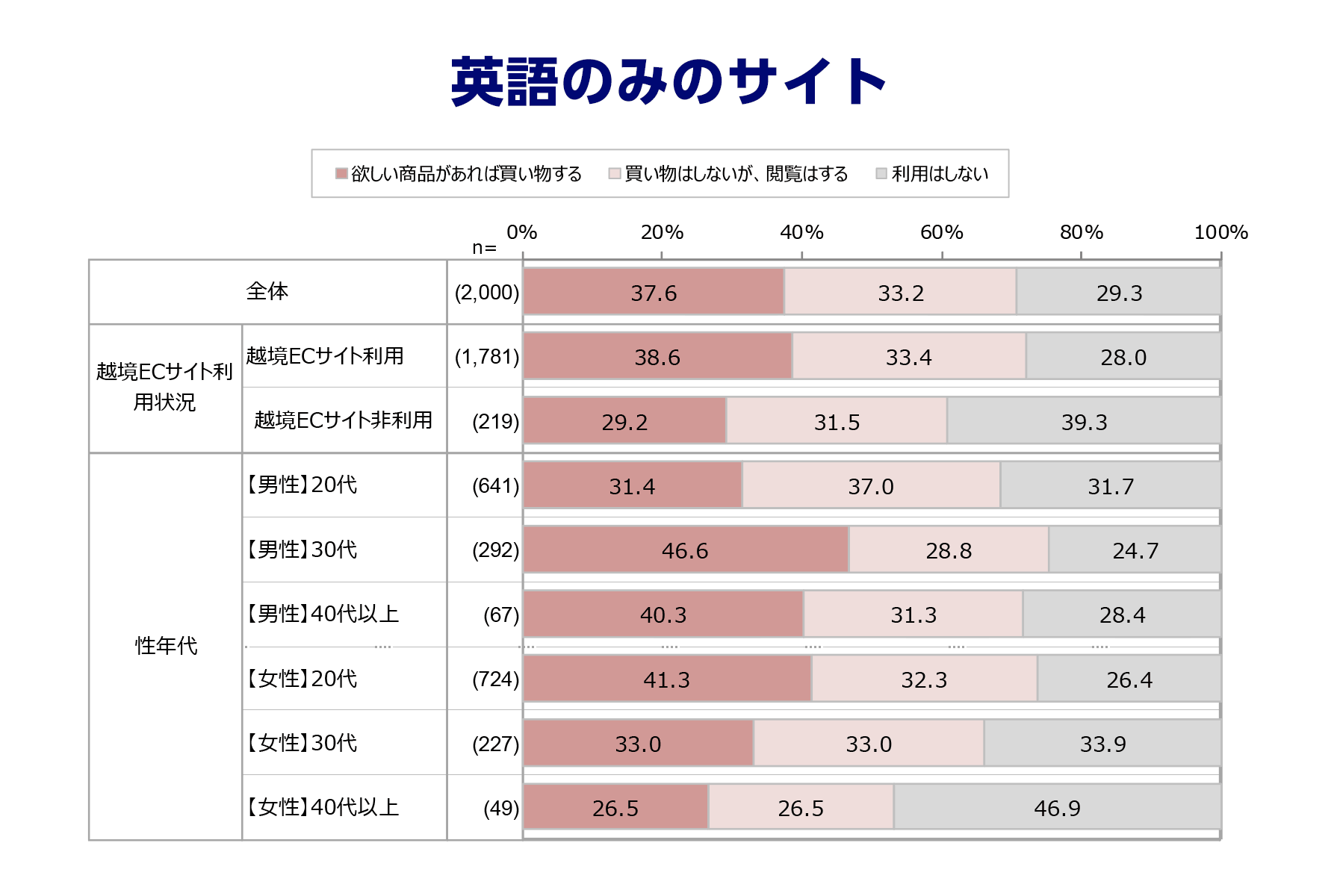 「閲覧はする」含めると半数近いが、英語のみのサイトよりも「買い物する」・「閲覧する」は低い。