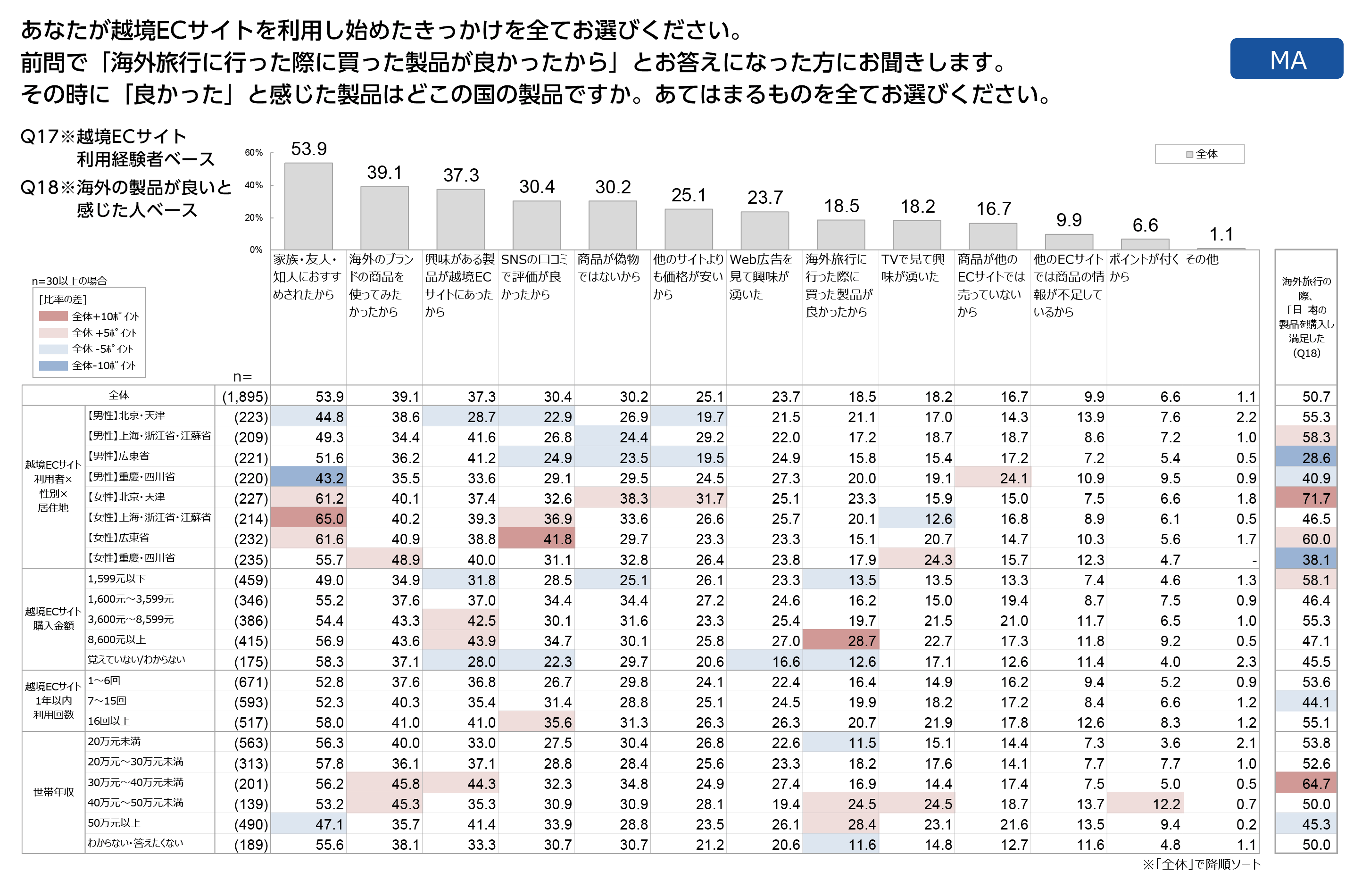 中国人2,000人対象 【越境ECサイトの利用実態調査】 中国人の越境EC購入、日本商品が最多 海外旅行がきっかけで越境ECサイト利用…18.5%