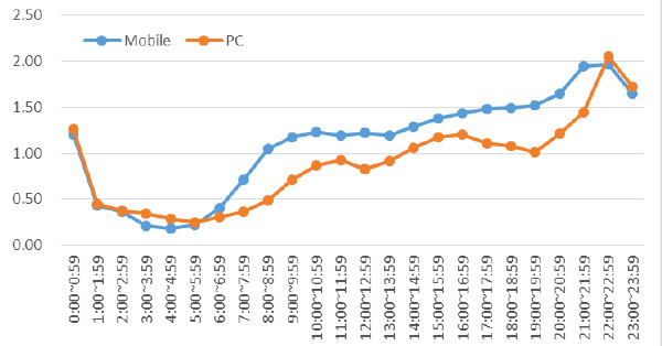 “国慶節休み(10月1日〜10月7日)”日本滞在中の百度検索の主力デバイスはモバイル。同期間中、最終日の10月7日を除いて、全ての日でモバイル端末での検索数がPC端末での検索数を上回り、最大で約2倍程度モバイルが上回った。モバイル端末での検索は、“国慶節休み”前の9月27日から徐々に増加し、10月2日に最大。一方で、PC端末は、“国慶節休み”前の9月29日の検索数が最も多かった。ただPCも前年比を上回っているという点も忘れてはいけない点だ。